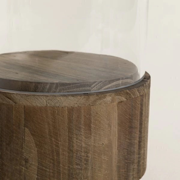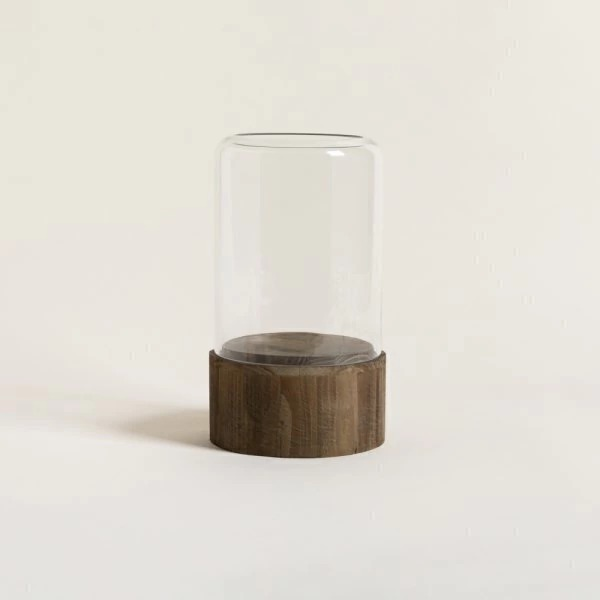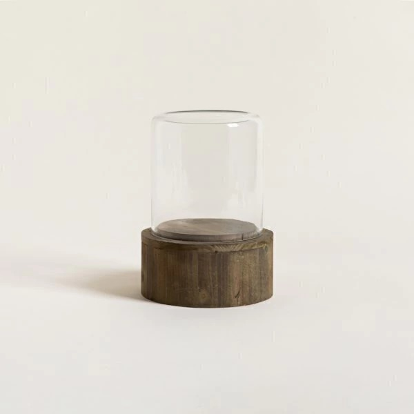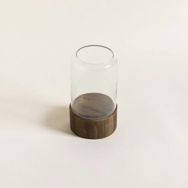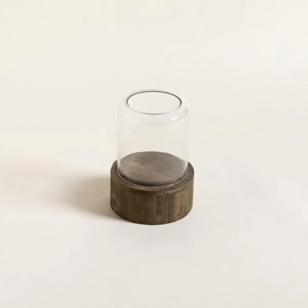 Porta vela de vidrio y base de madera