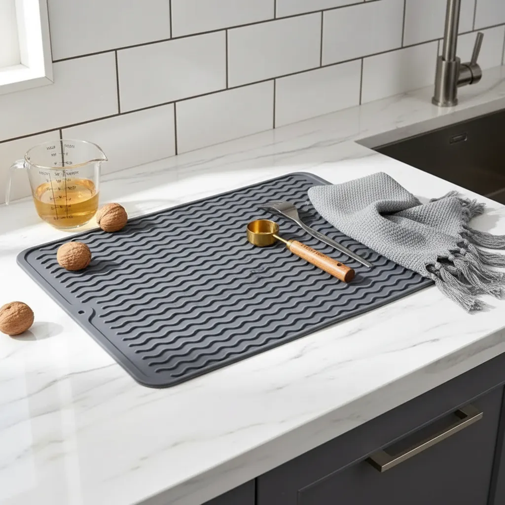 Secaplatos de silicona antideslizante para cocina gris