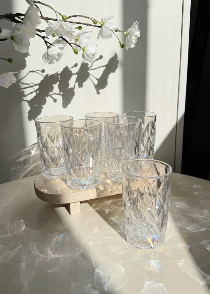 Vaso de vidrio tornasolado tallado de 420 ml