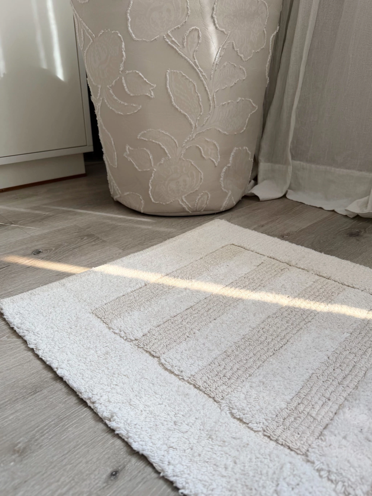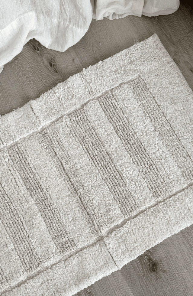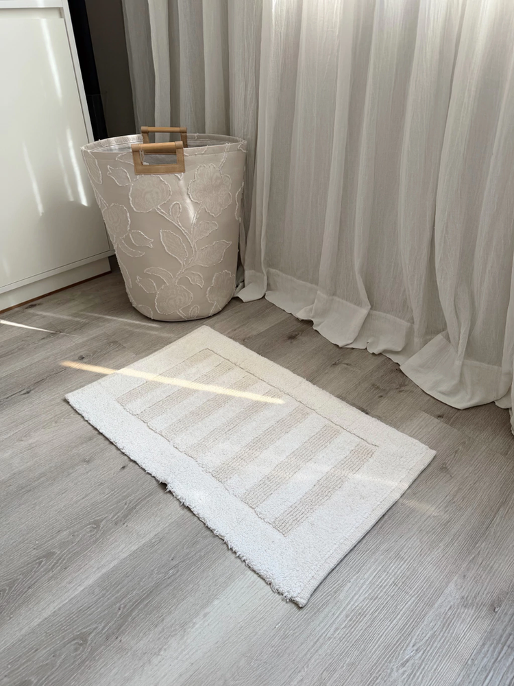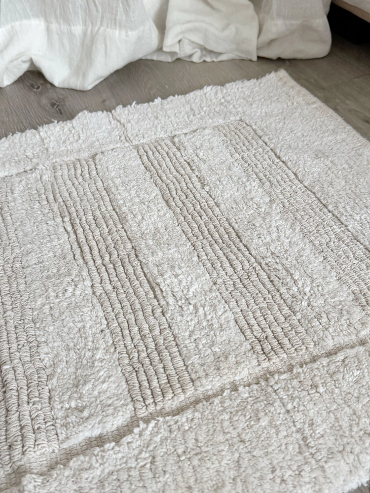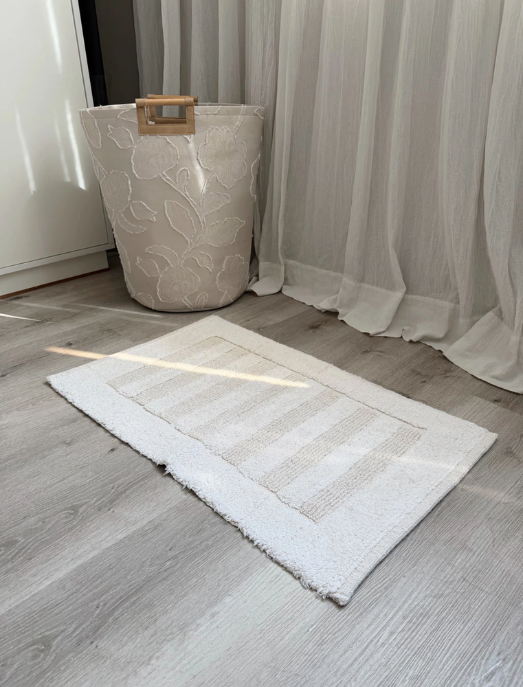 Alfombra baño 100% algodon con franjas pelo corto blanca