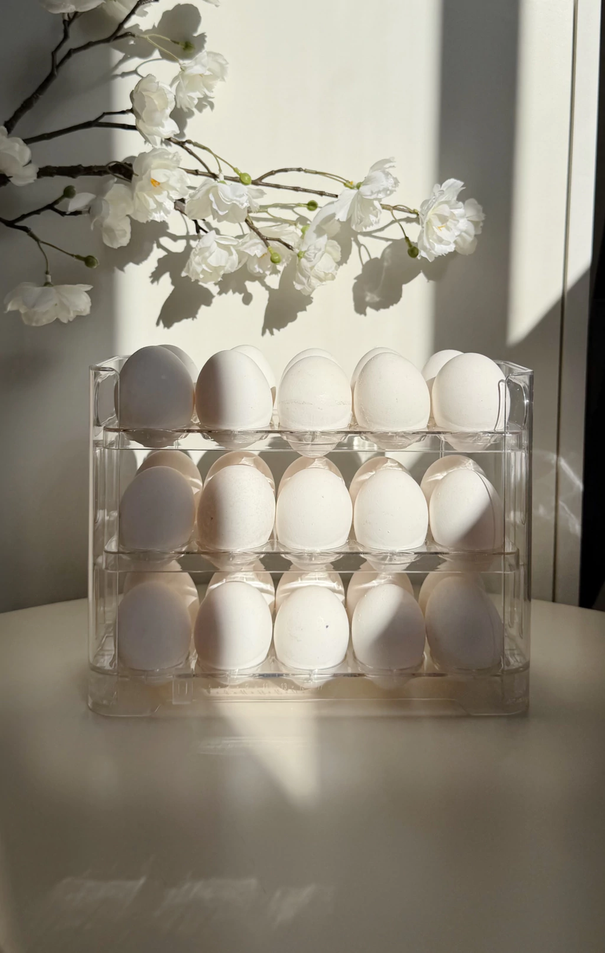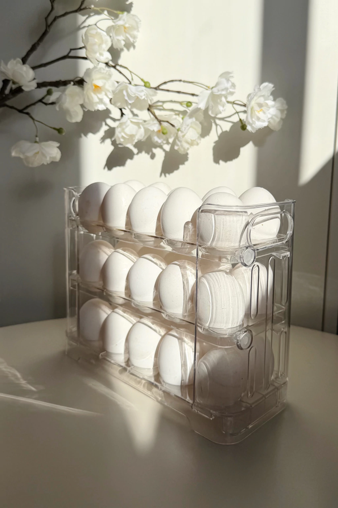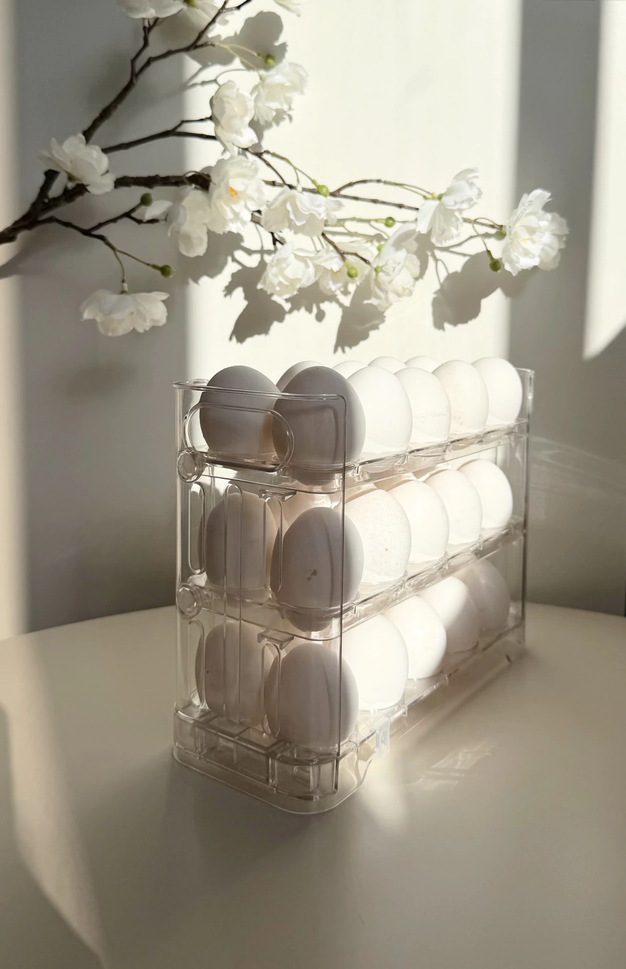 Huevera transparente con tres niveles para 30 huevos