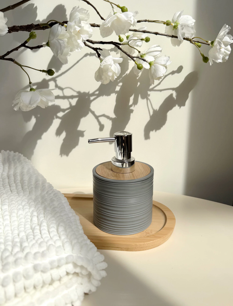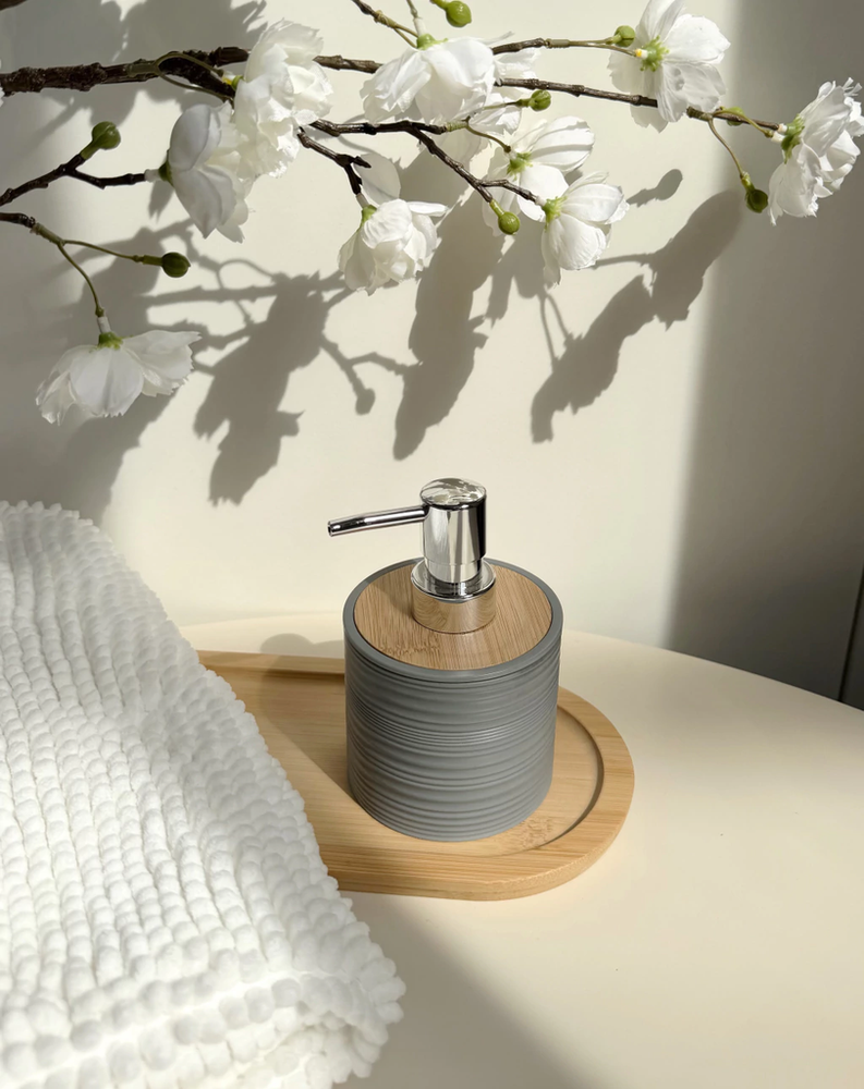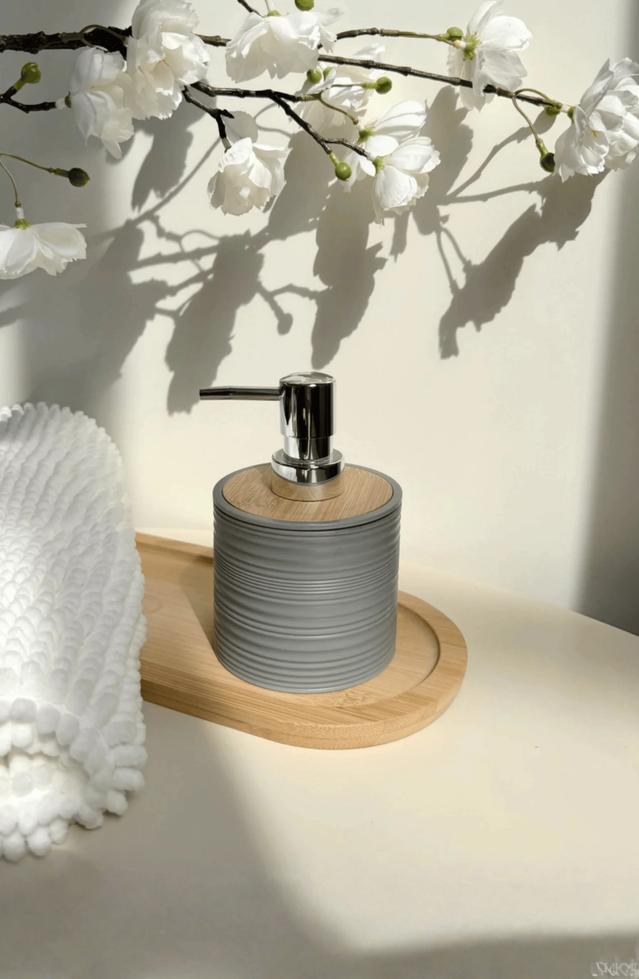 Dispenser para jabón líquido rayado de plástico con bamboo