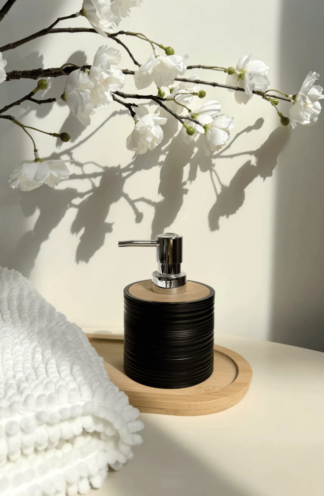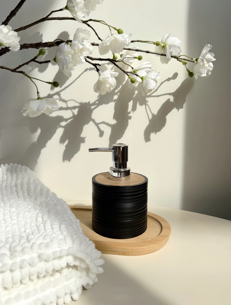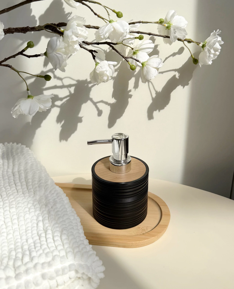 Dispenser para jabón líquido rayado de plástico con bamboo