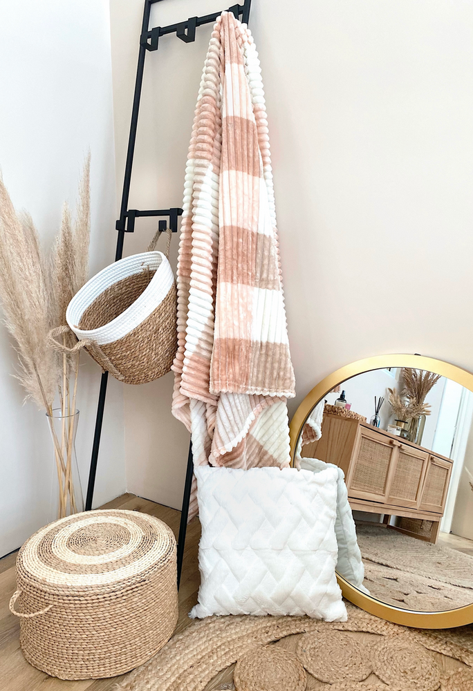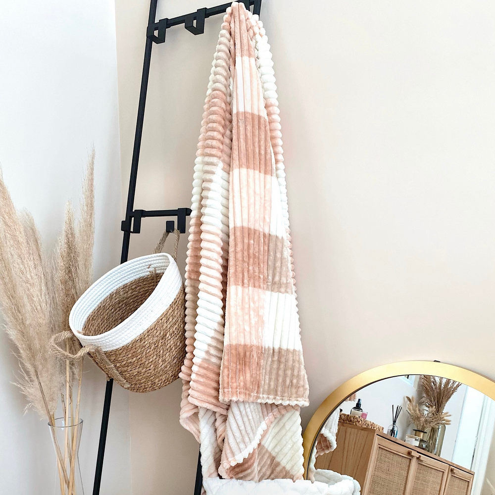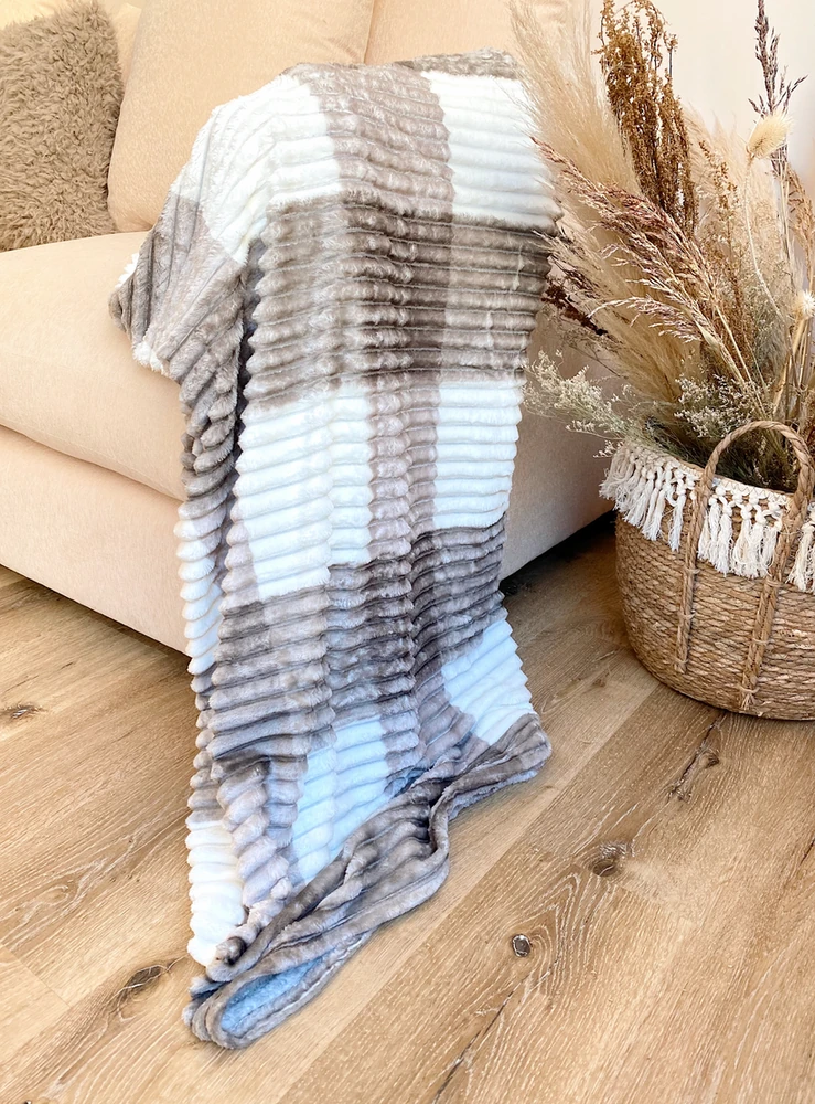 Manta polar rayada con colores en cuadrille 195x215cm