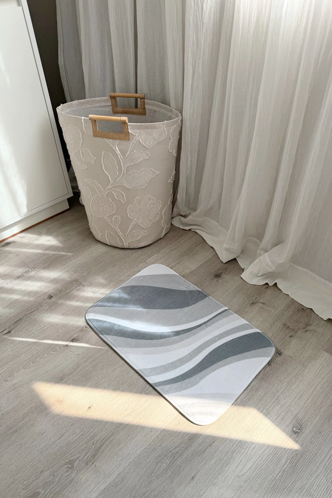 Alfombra de baño antideslizante de ondas grises