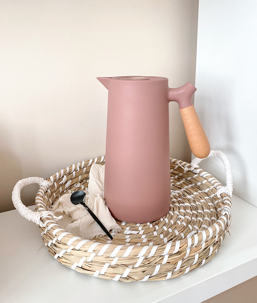 Termo de plástico con vidrio térmico interno y asa de bambú