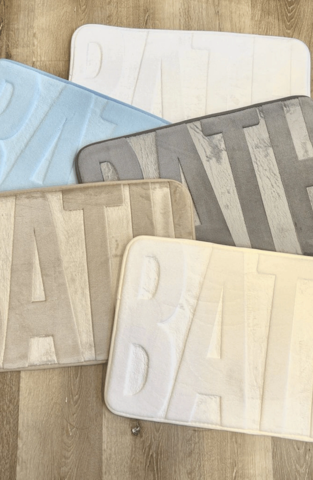 Alfombra de baño de microfibra memory foam antideslizante con letras BATH