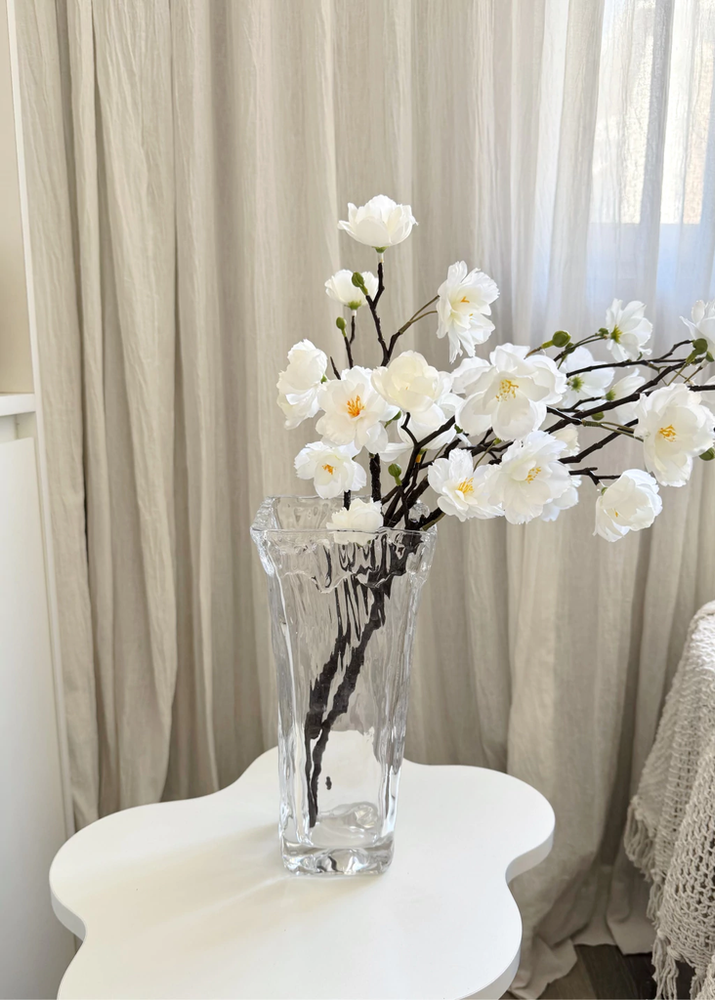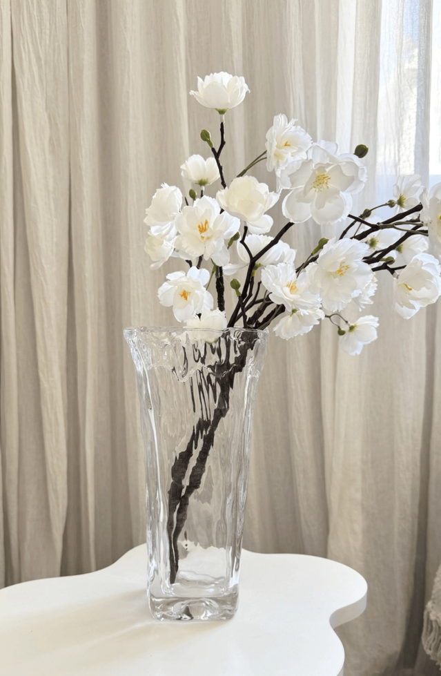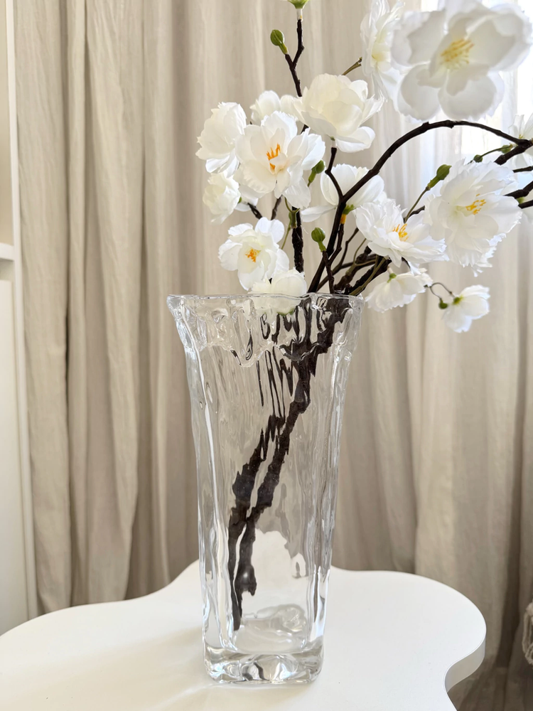 Florero de vidrio cuadrado cristalizado con diseño tipo piedra
